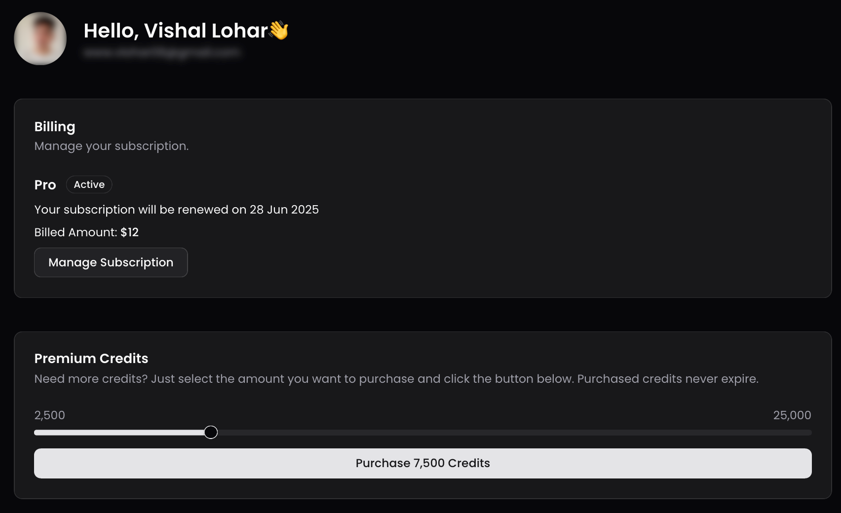 To solve this problem, we have now added Premium Credits. Any user with an active subscription plan can purchase Premium credits. You can buy a minimum of 2500 and a maximum of 25000 credits in one purchase.